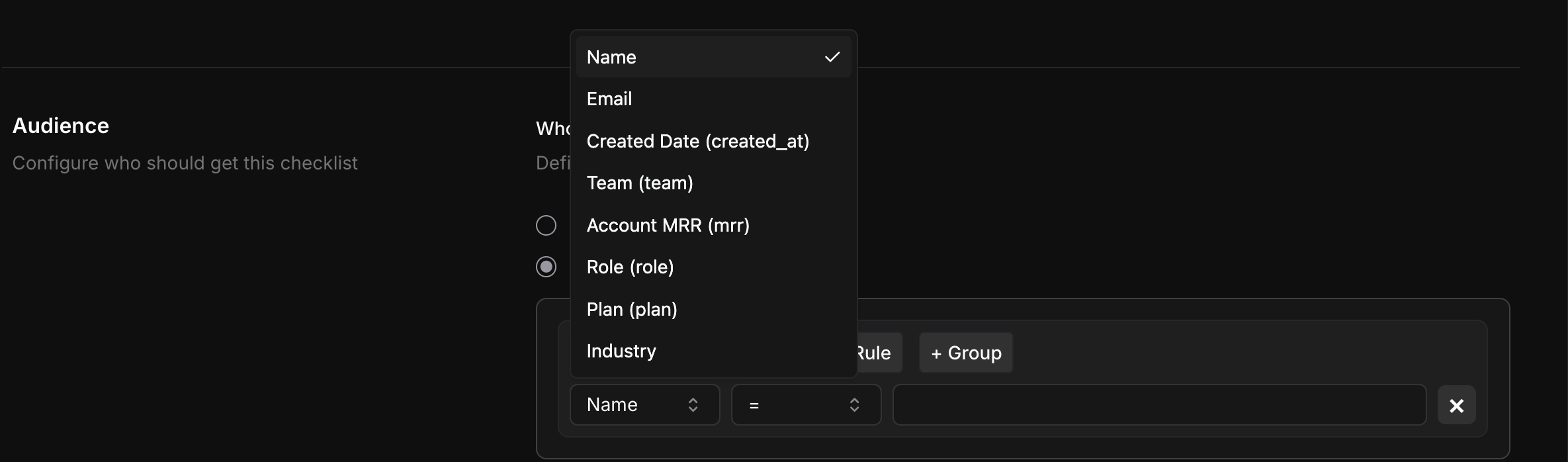 Apply rules like "Plan is Premium" or "Feature Adoption is false" to refine your tour recipients.