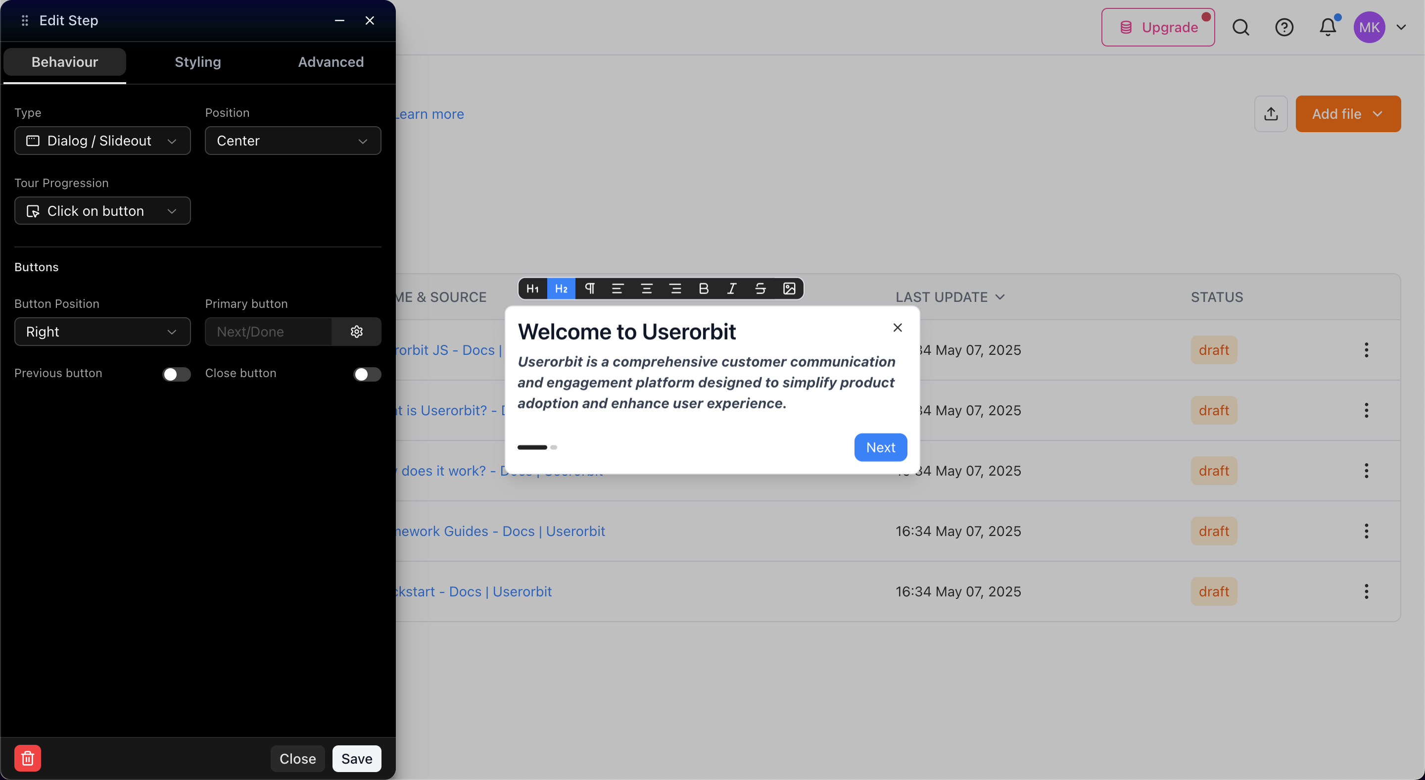 Edit in App is a visual tour builder that opens your application with special editing capabilities enabled through the Userorbit Chrome Extension. You can: