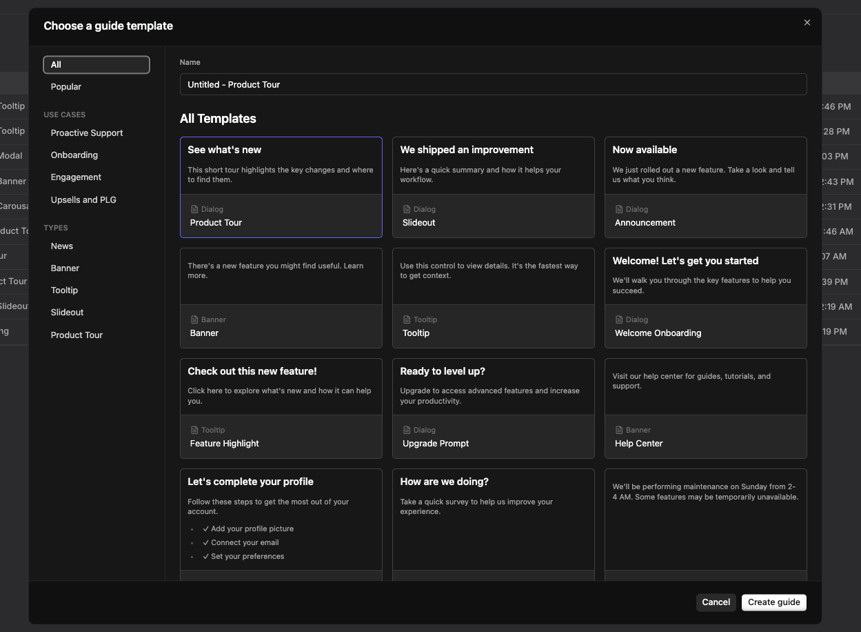 Targeting: Choose who sees the tour (e.g., new users, specific user segments)