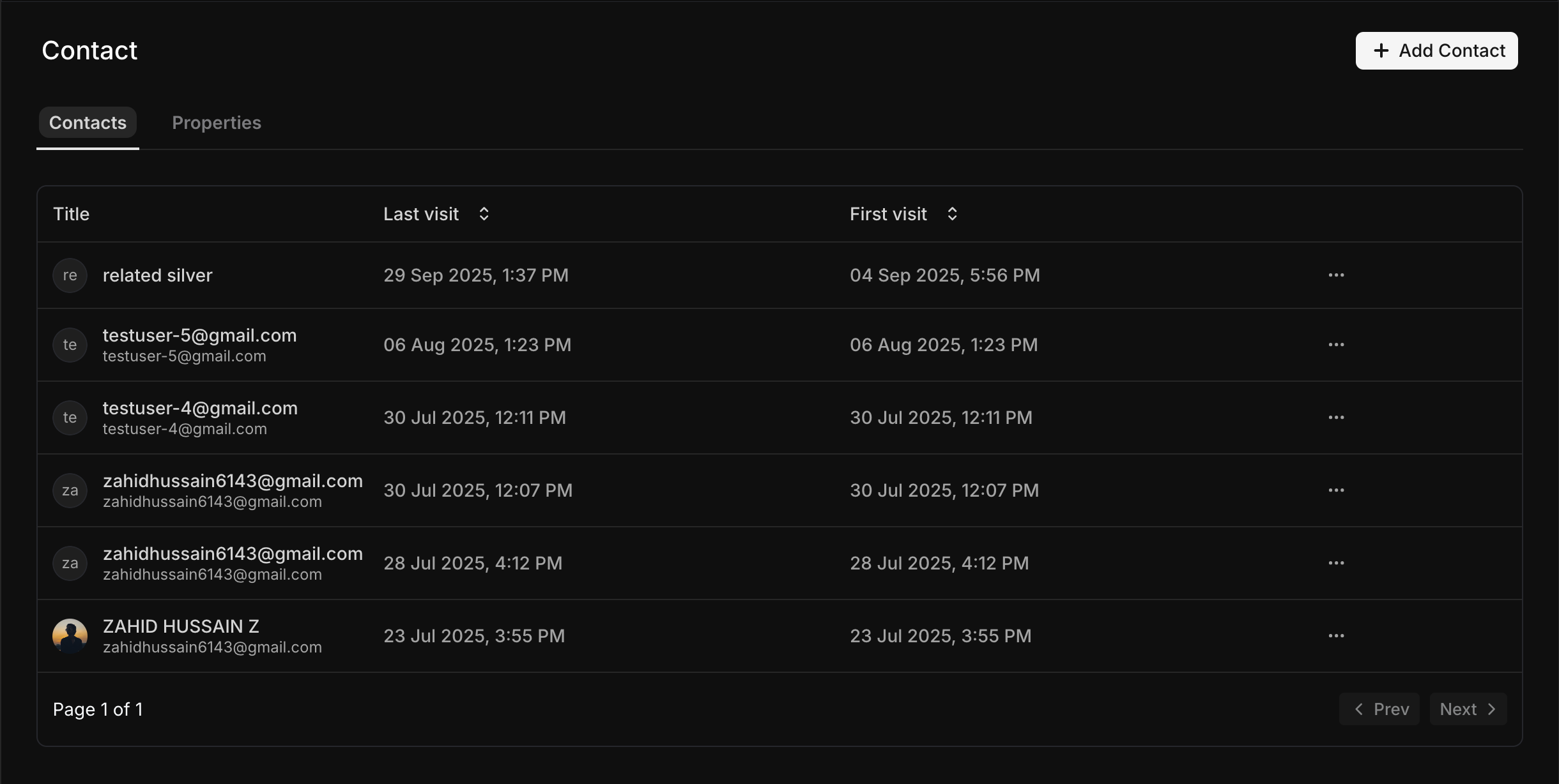 Add Contact: Use the "Add Contact" button to manually add new contacts